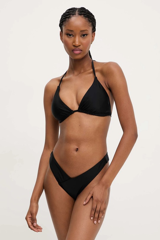 Μαγιό δύο τεμάχιων από τη συλλογή Answear.LAB. Μοντέλο από λείο ύφασμα. Το μοντέλο συνοδεύεται από φόρεμα παραλίας.