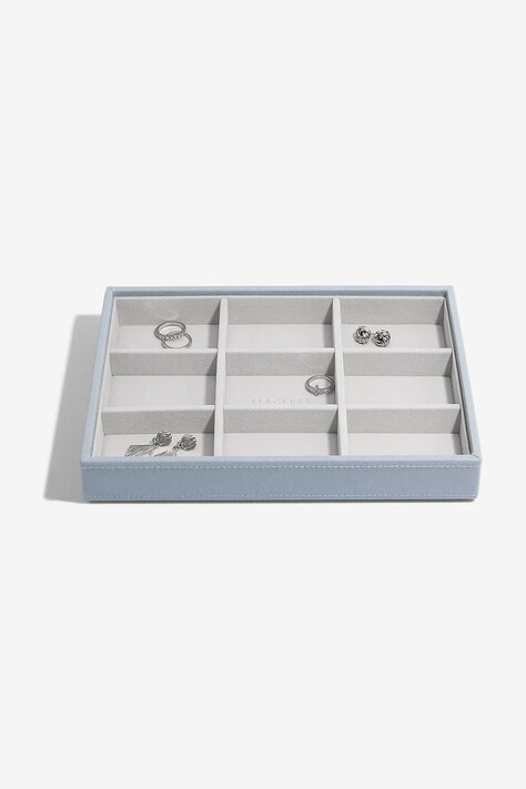 - Το κουτί παρέχει ασφαλή αποθήκευση των αγαπημένων σας μπιχλιμπιδιών, έχει έξι θήκες διαφόρων μεγεθών και κλείνει με φερμουάρ.