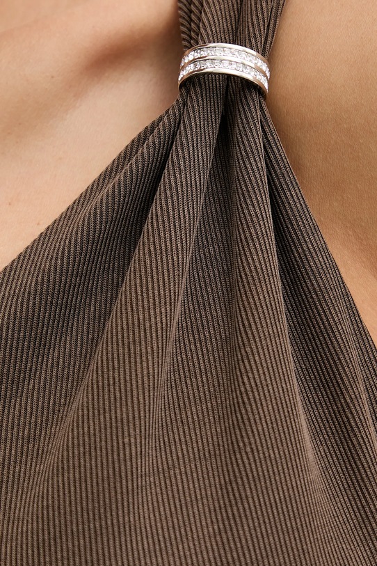 - Το μοντέλο είναι κατασκευασμένο από από πλεκτό ύφασμα με ριγέ δομή, το οποίο είναι εξαιρετικά εύκαμπτο και απαλό, χάρη στο οποίο ταιριάζει καλά στη φιγούρα και είναι άνετο στη χρήση.
