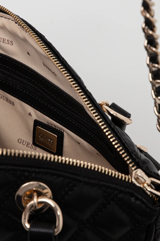 Μεσαίου μεγέθους τσάντα από τη συλλογή Guess. Με κλείστρο μοντέλο από κατασκευασμένο από απομίμηση δέρματος, το οποίο είναι εύκολο να καθαριστεί και να φροντιστεί.